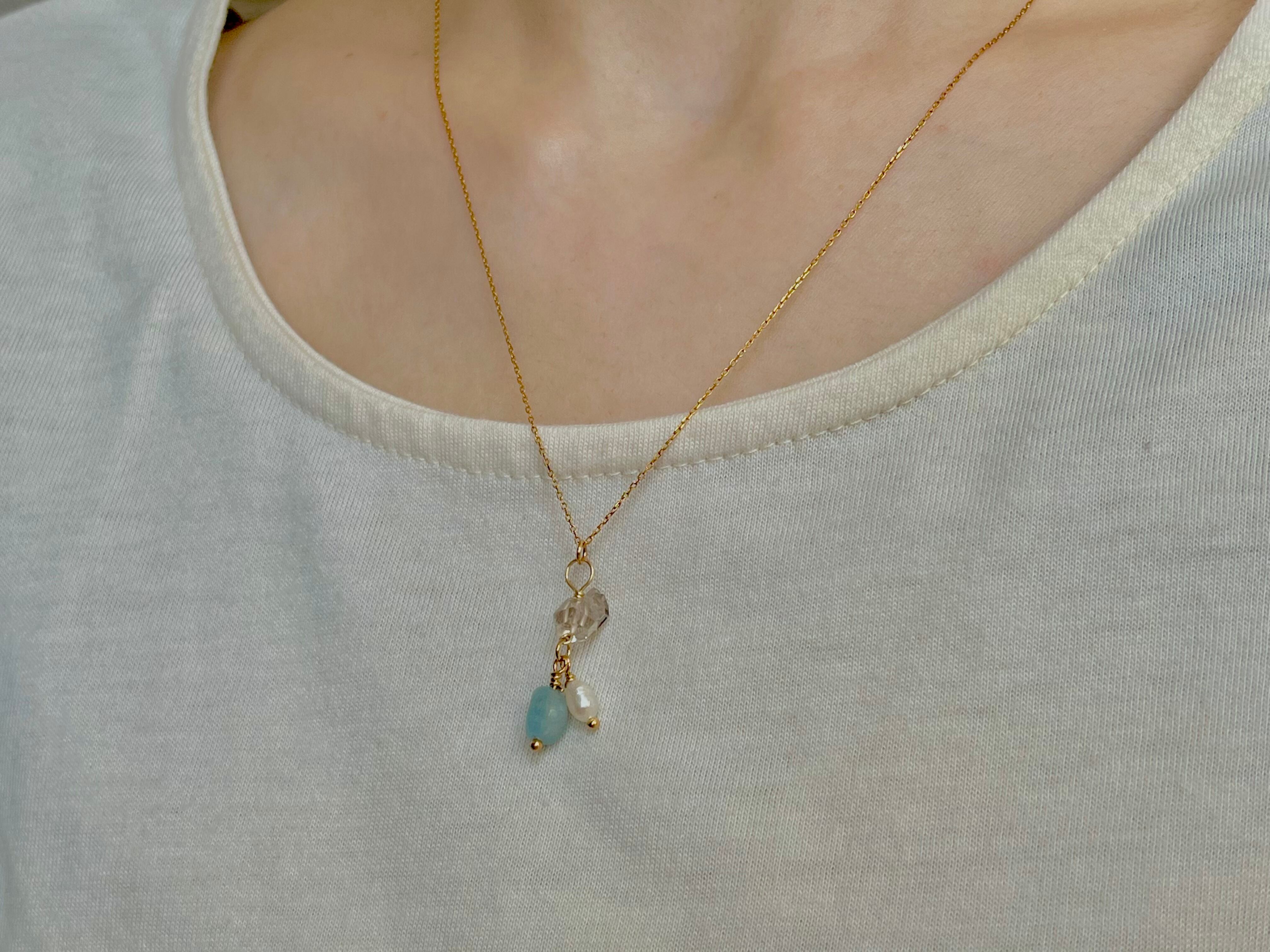 ハーキマーダイヤモンド+アクアマリン+淡水パール