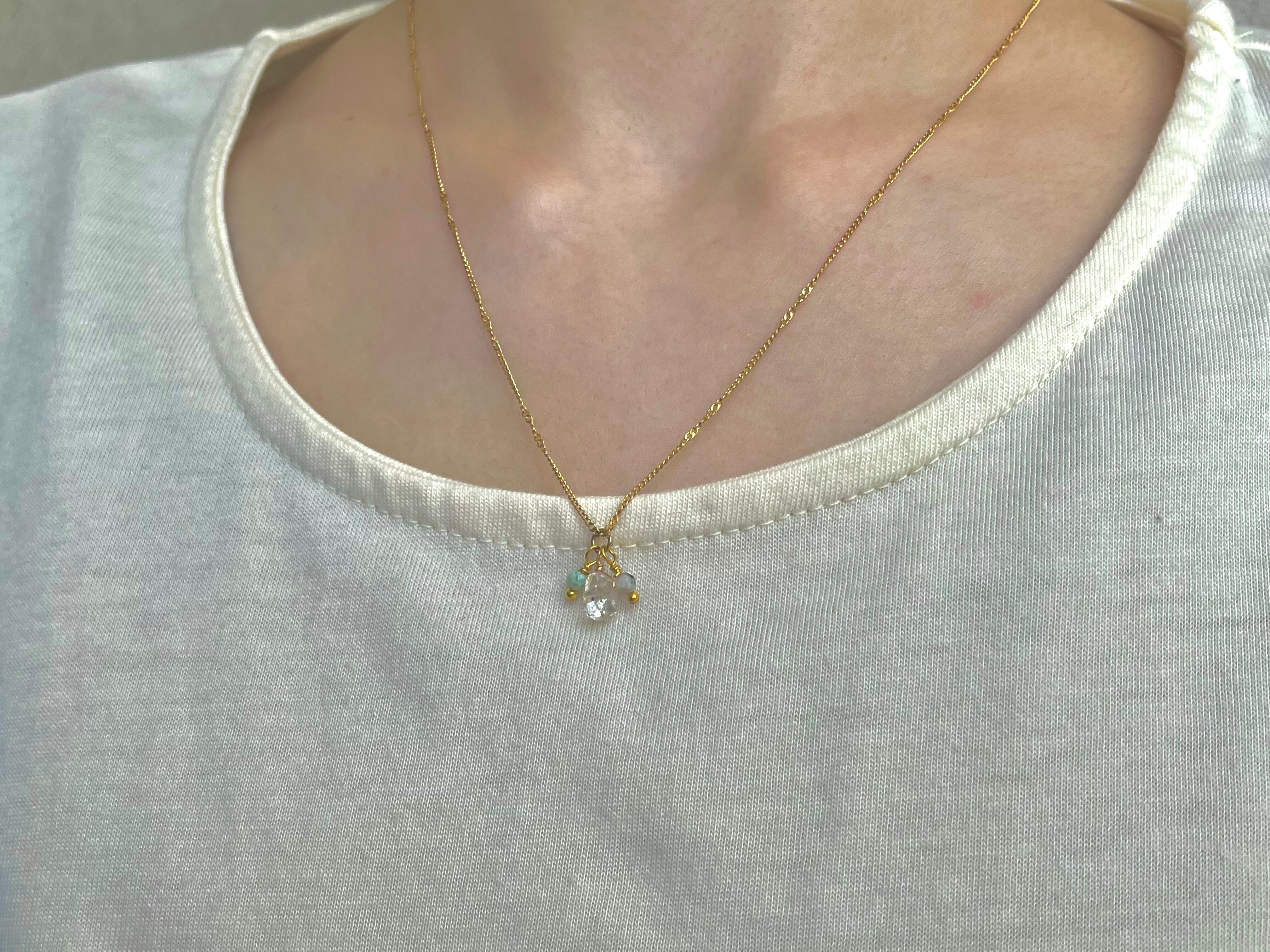 ハーキマーダイヤモンド +ラブラドライトサージカルステンレスネックレス