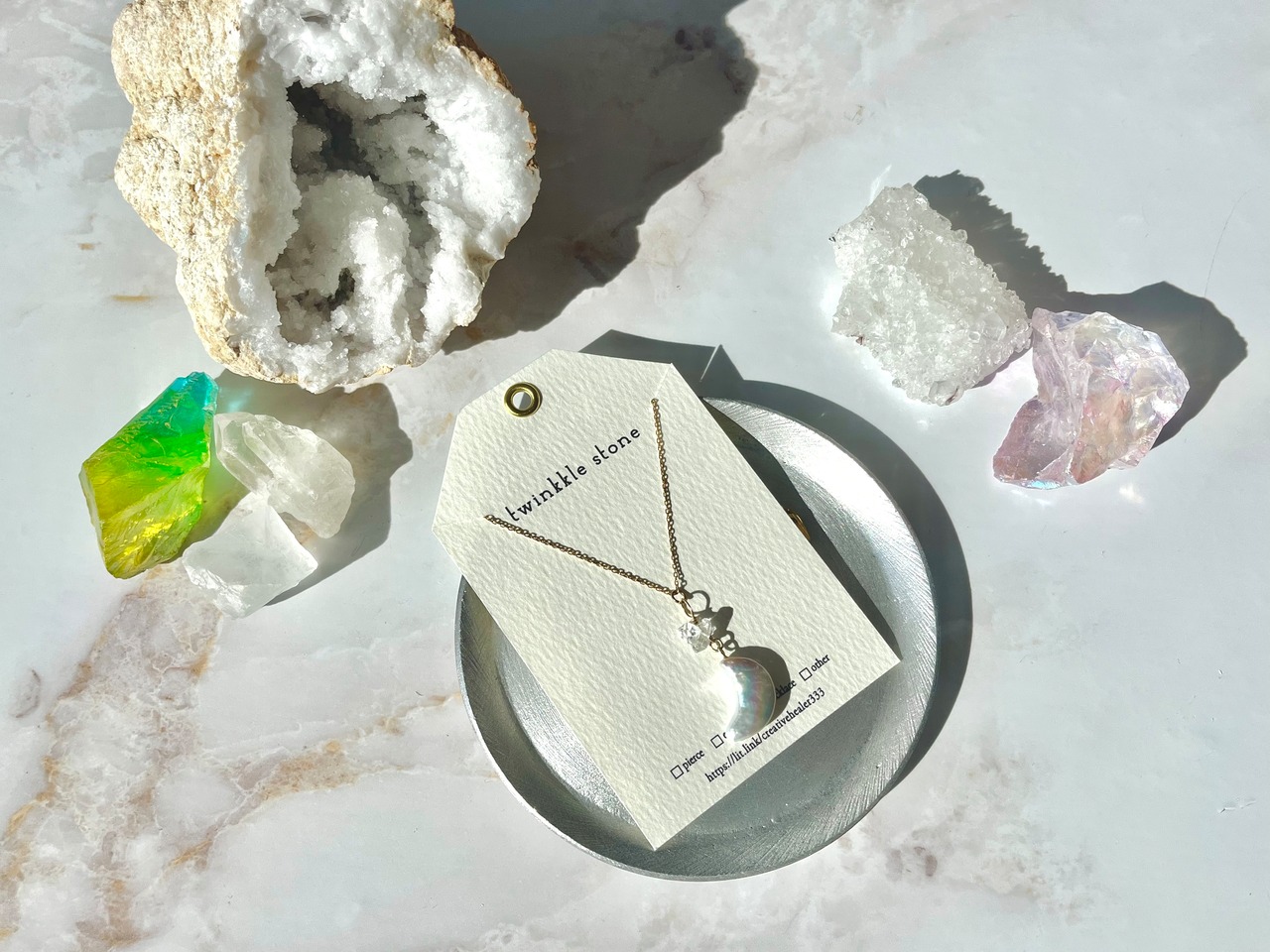 ハーキマーダイヤモンド+月淡水パール ネックレス